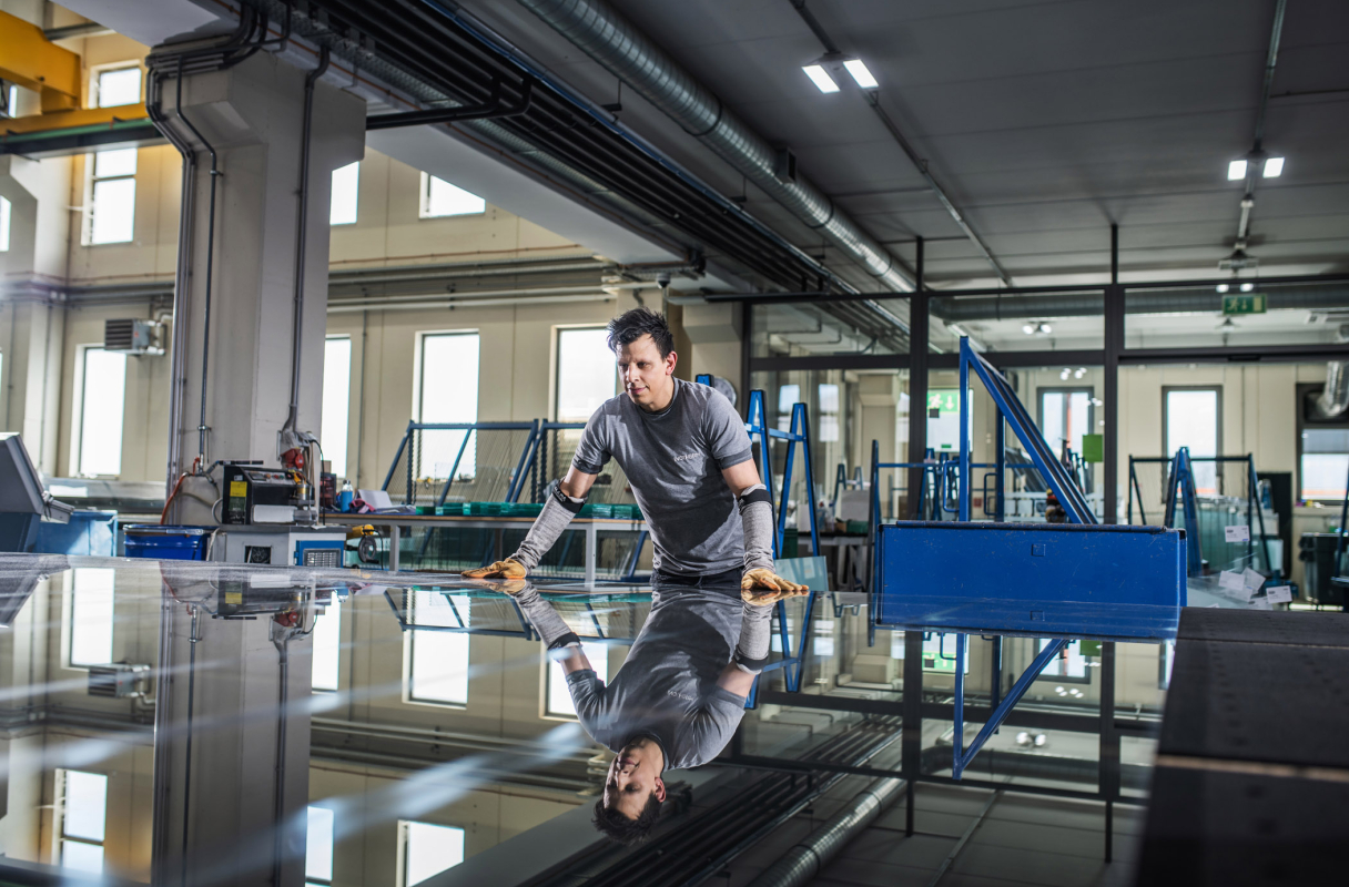 Nasze początki sięgają branży szklarskiej. bogatą tradycję własnej szklarni rozwinęliśmy w odnowionej i nowoczesnej fabryce, wykorzystując najnowocześniejszą technologię szklarską i sami produkujemy wszystkie szyby do drzwi inotherm. najwyższą jakość naszych szyb potwierdza także certyfikat RAL.